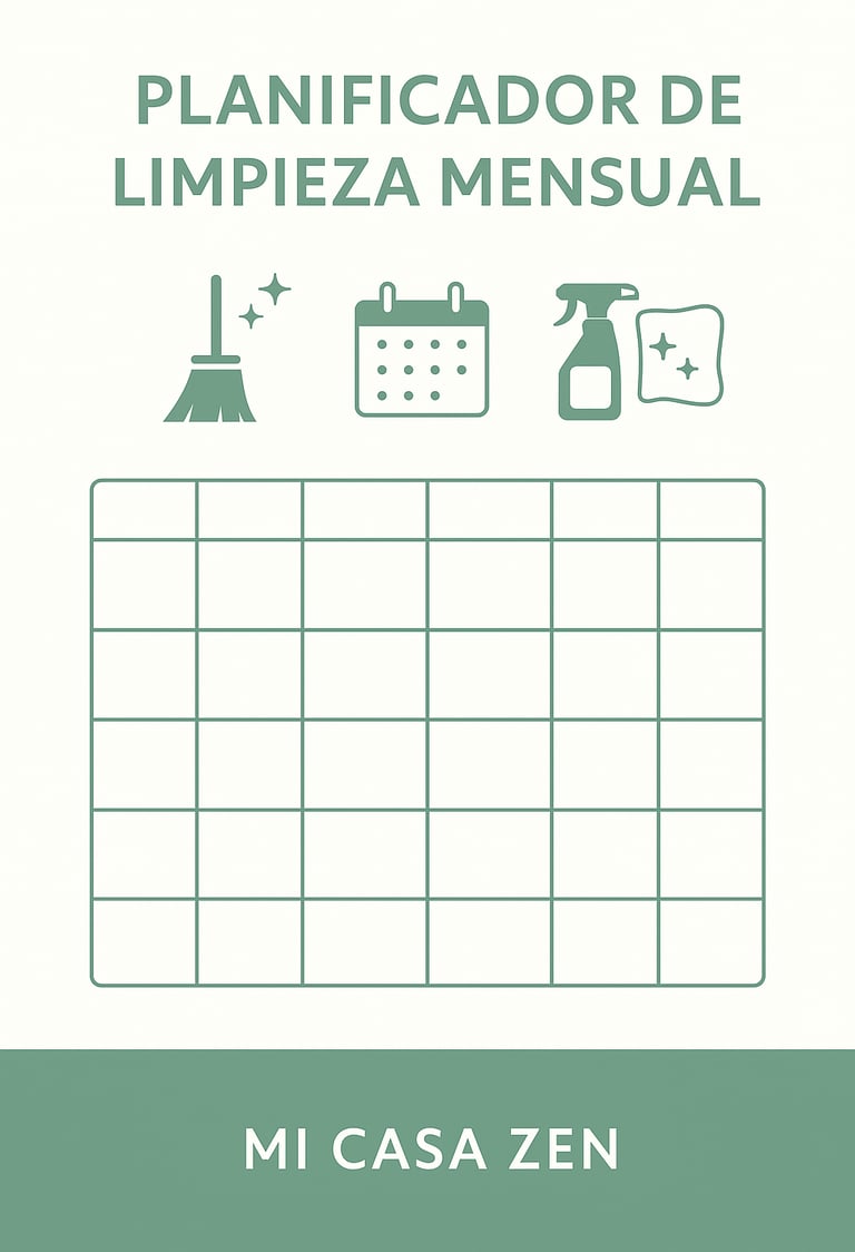Descarga gratis nuestro Planificador de Limpieza Mensual para organizar tu hogar sin esfuerzo. Ideal para imprimir o usar en digital. Mi Casa Zen.